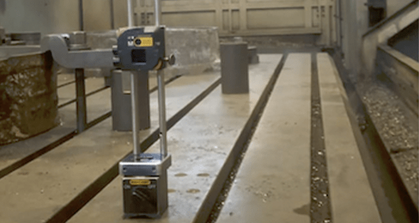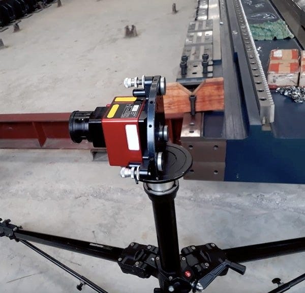 As the slide table continuously moves the receiver, it checks its position, relative to a laser reference beam. Any movement left or right or up or down is quickly seen and noted.